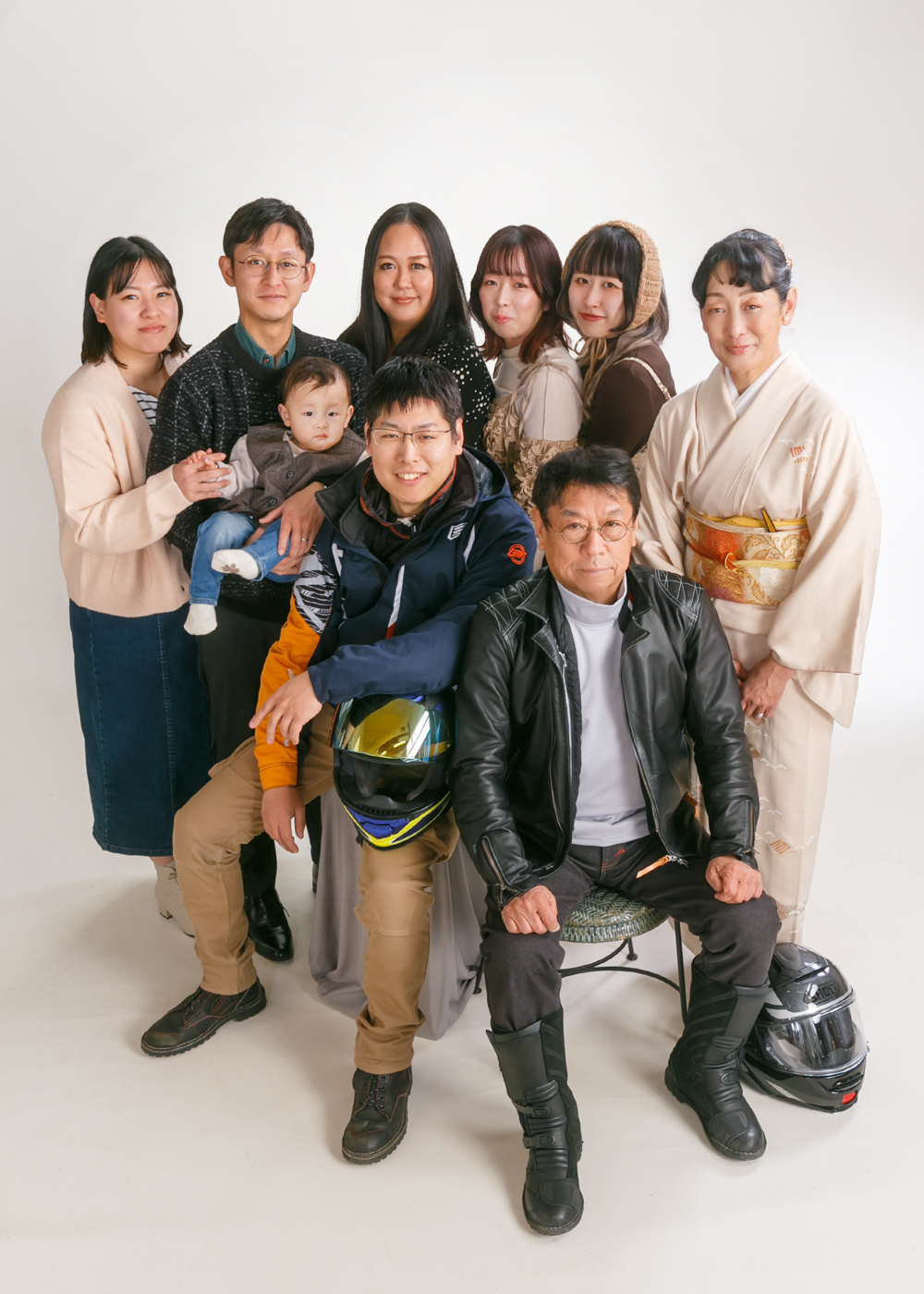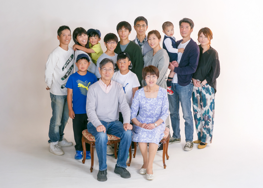 写真のはせの本店スタジオは県下最大級ですので、15名程度でしたら一度にスタジオ撮影をすることができます。ぜひ親戚の方々にお声掛けいただき、記念の一枚をお残しください。